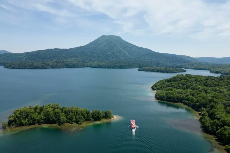 Hikers can head to designated hiking trails around Mount Okan and Mikan, paddle across the calm waters of the lake, and bathe in natural hot water springs with stunning views of the lake’s banks.